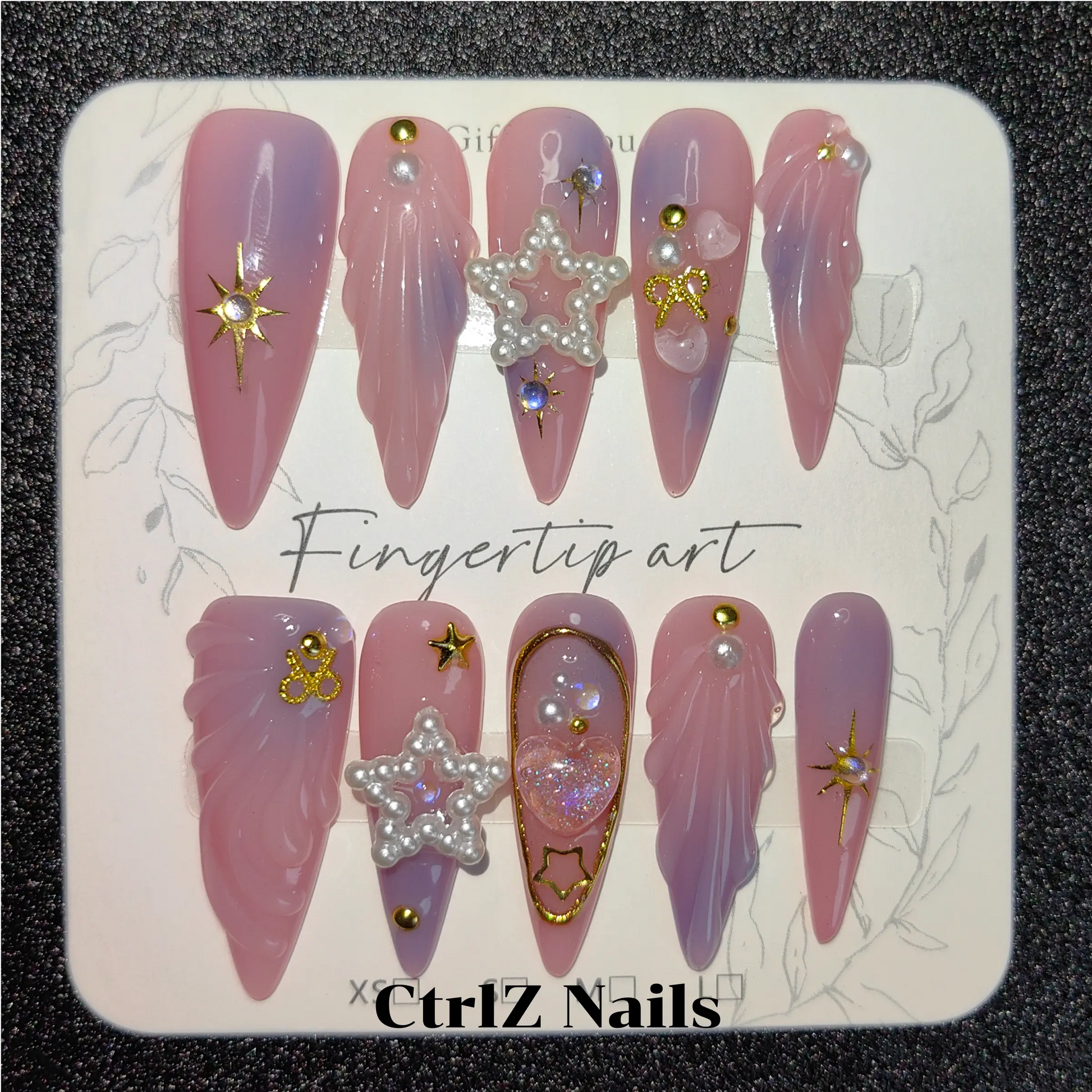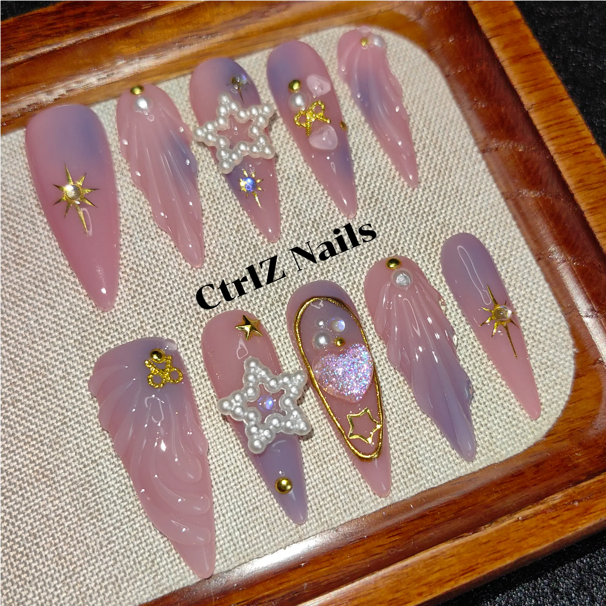 Handmade Celestial Stars Press-On Nails | Glue-On Fake Nails | Acrylic Starry Sky Design